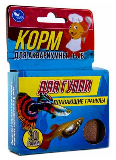Корм повседневный "Аквакулинар" для гуппи, содержит все необходимые для развития подводной фауны компоненты и абсолютно безвреден для экосистемы. Любой фильтр легко удаляет его остатки, поэтому даже обильный обед ваших питомцев не закончится засорённым аквариумом.