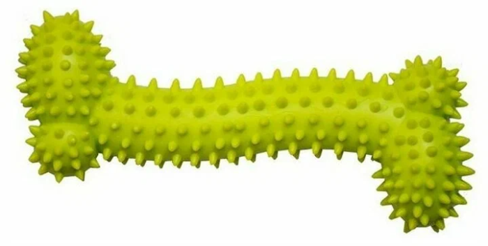 Игрушка в виде кости с шипами, выполненная из термопластичной резины, поможет собаке весело провести время и позаботится о ее зубах. За счет того, что игрушка имеет небольшие шипы, происходит мягкое и безболезненное очищение зубов, а также массаж десен животного. С пищалкой.