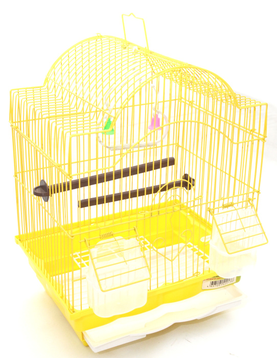 Клетка для птиц выполнена из качественного и нетоксичного материала. Удобный выдвижной поддон легко моется. Полностью укомплектована необходимыми аксессуарами: внешние кормушки, жердочка и качелька.