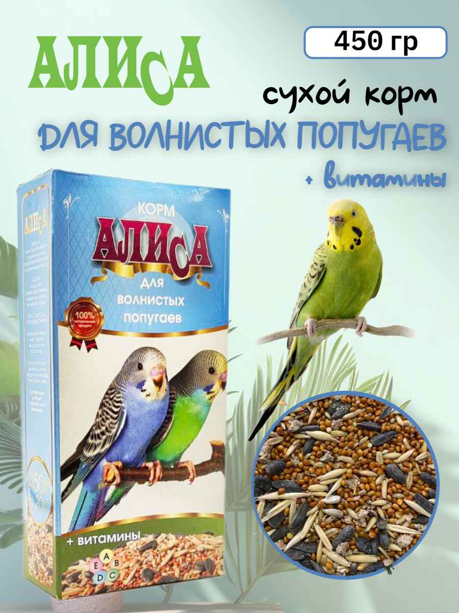 Корм для волнистых попугаев состоит из тщательно подобранных компонентов с добавлением витаминов.