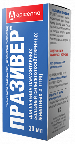 —Apicenna Празивер, для сельхоз животных от гельминтов, 30 мл