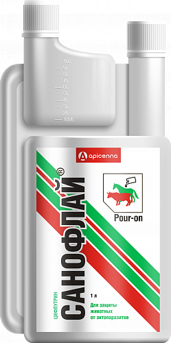 Санофлай — инсекто-акарицидный и репеллентый препарат для защиты крупного рогатого скота и лошадей от двукрылых насекомых, блох и клещей. В 1 мл в качестве действующего вещества Санофлай содержит 10 мг цифлутрина, а также вспомогательные компоненты: диметилсульфоксид, поливинилпирролидон, изопропиловый спирт, сорбитан олеат и полиэтиленгликоль. По внешнему виду Санофлай представляет собой прозрачную жидкость светло-желтого цвета для наружного применения. Препарат расфасовывают в полимерные флаконы с дозатором по 500 мл и 1000 мл.