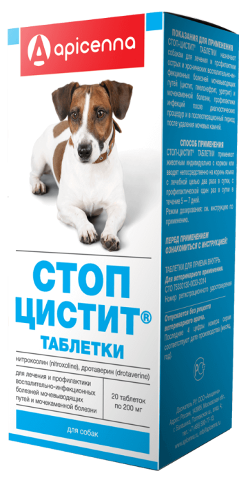 Стоп-Цистит таблетки назначают для лечения и профилактика острых и хронических воспалительно-инфекционных болезней мочевыводящих путей (цистит, пиелонефрит, уретрит) и мочекаменной болезни, профилактика инфекций при диагностических процедурах и в послеоперационный период после удаления мочевых камней у кошек и собак.