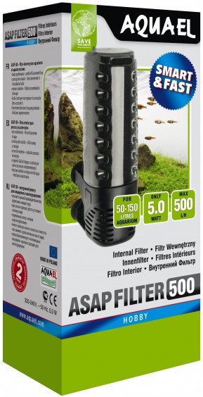 Комплектация товара Внутренний фильтр AQUAEL ASAP FILTER 500 для аквариума 50 - 150 л (500 л/ч, 5 Вт) зависит от конкретной поставки и может меняться поставщиком без предварительного уведомления!