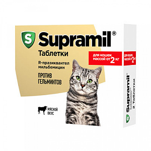 Supramil – это новый российский антигельминтный препарат широкого спектра действия с улучшенным составом для кошек. Supramil максимально безопасно воздействует на организм животных.
