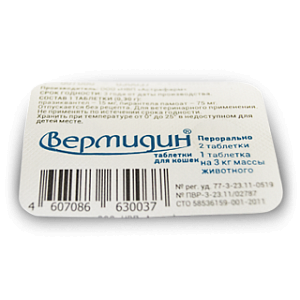 Вермидин – антигельминтный препарат в виде таблеток, предназначенный для лечения и профилактики нематодозов и цестодозов у кошек. Препарат действует на все виды и стадии развития глистов.