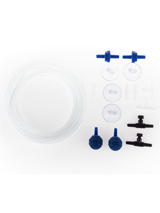 Barbus SET007 Набор для компрессора: шланг 3 метра, соединитель 2 шт, присоска 4 шт, краник 2 шт, обратный клапан 2 шт, тройник 2 шт, распылитель 2 шт . Данный набор имеет стандартные разъёмы и подойдет к любому аквариумному компрессору.
