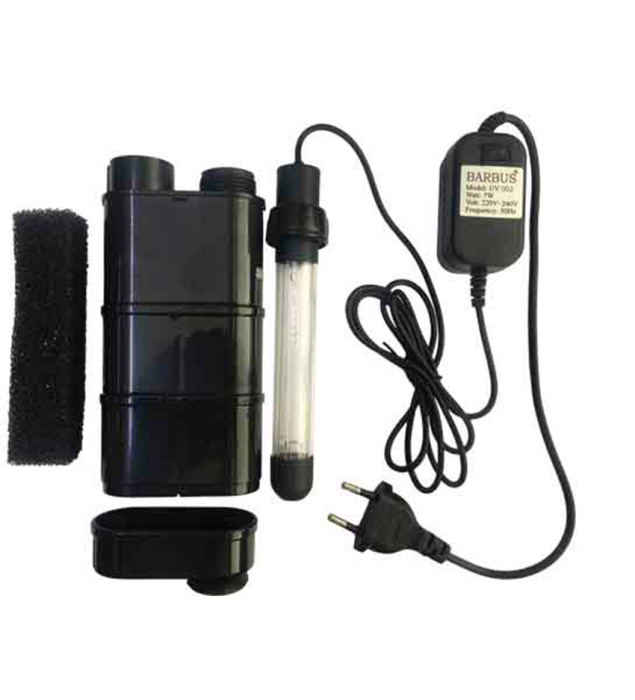 Основную функцию выполняет ультрафиолетовая ламп, которая обеспечивает полное сканирование потока воды, проходящего через нее, тем самым делая ее абсолютно стерильной, уничтожая вирусы, бактерии, противодействуя цветению воды.В корпусе сканера находится губка, которая обеспечивает механическую очистку воды в аквариуме.К ультрафиолетовому сканеру воды необходимо подобрать водяную помпу, мощность которой будет соответствовать объему Вашего аквариума и разъему в корпусе сканера.