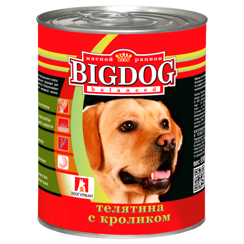 Мясные консервы для собак «БИГ ДОГ» ТЕЛЯТИНА С КРОЛИКОМ