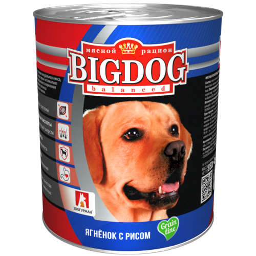 «БИГ ДОГ» - мясной корм для собак на основе натурального мяса, содержит полезные злаки и овощи.