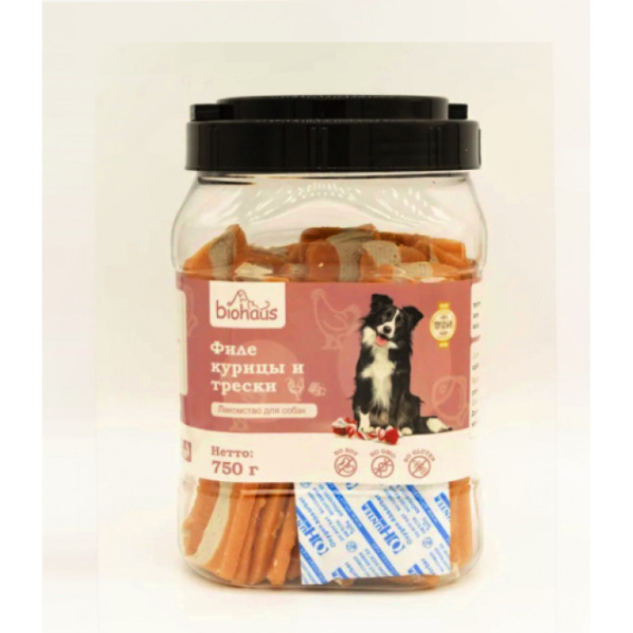 BIOHAUS Лакомство для собак Филе курицы и трески, 750 г
