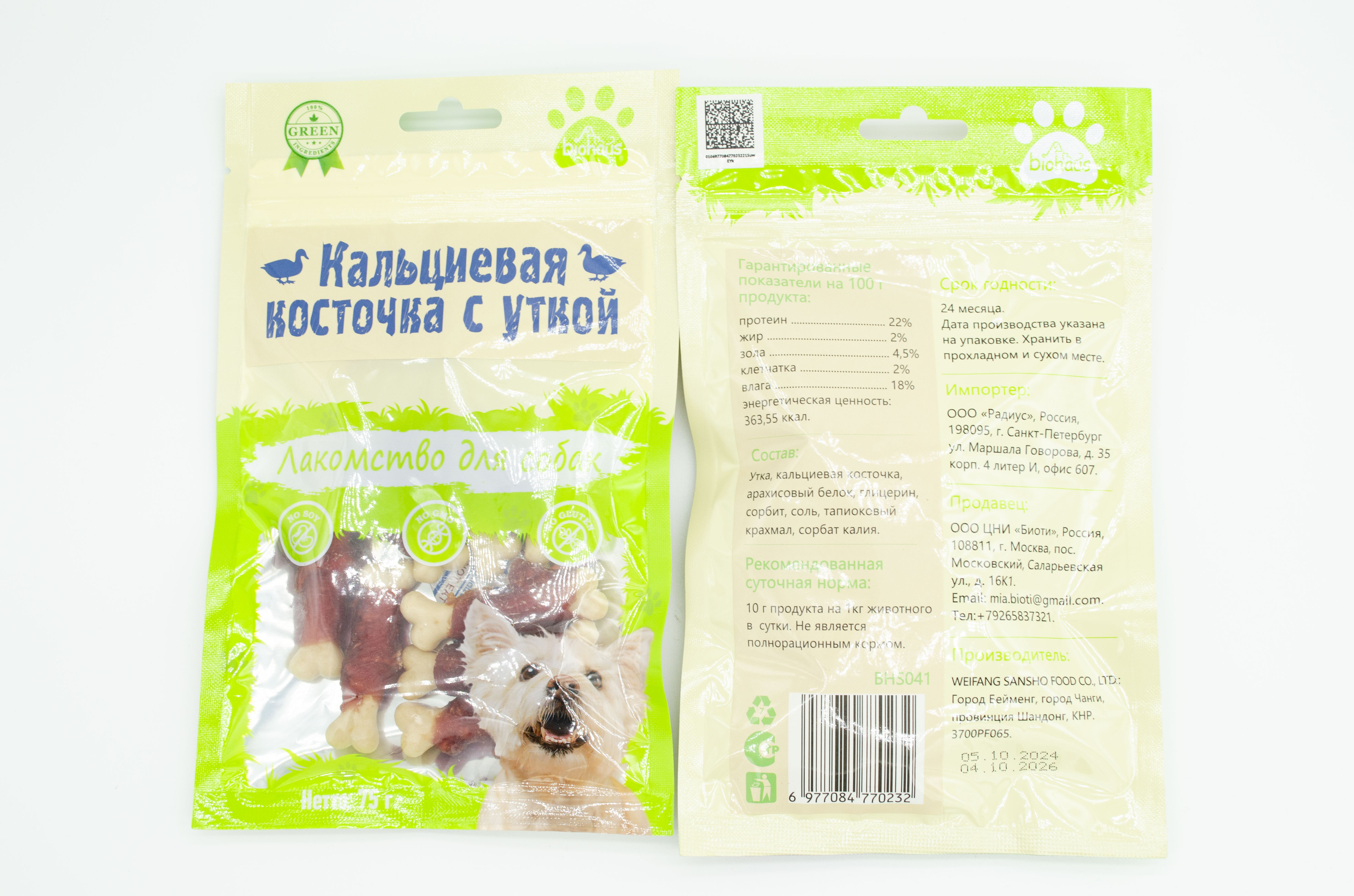 утка, кальциевая косточка, арахисовый белок, глицерин, сорбит, соль, тапиоковый крахмал, сорбат калия.