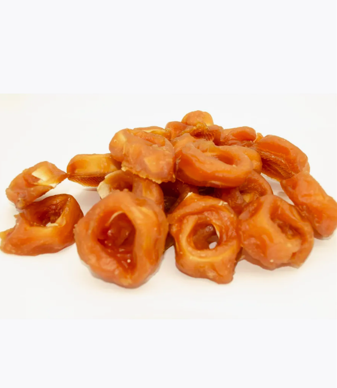 грудки куриные, треска, арахисовый белок, сорбит, соль, глицерин, тапиоковый крахмал, сорбат калия.