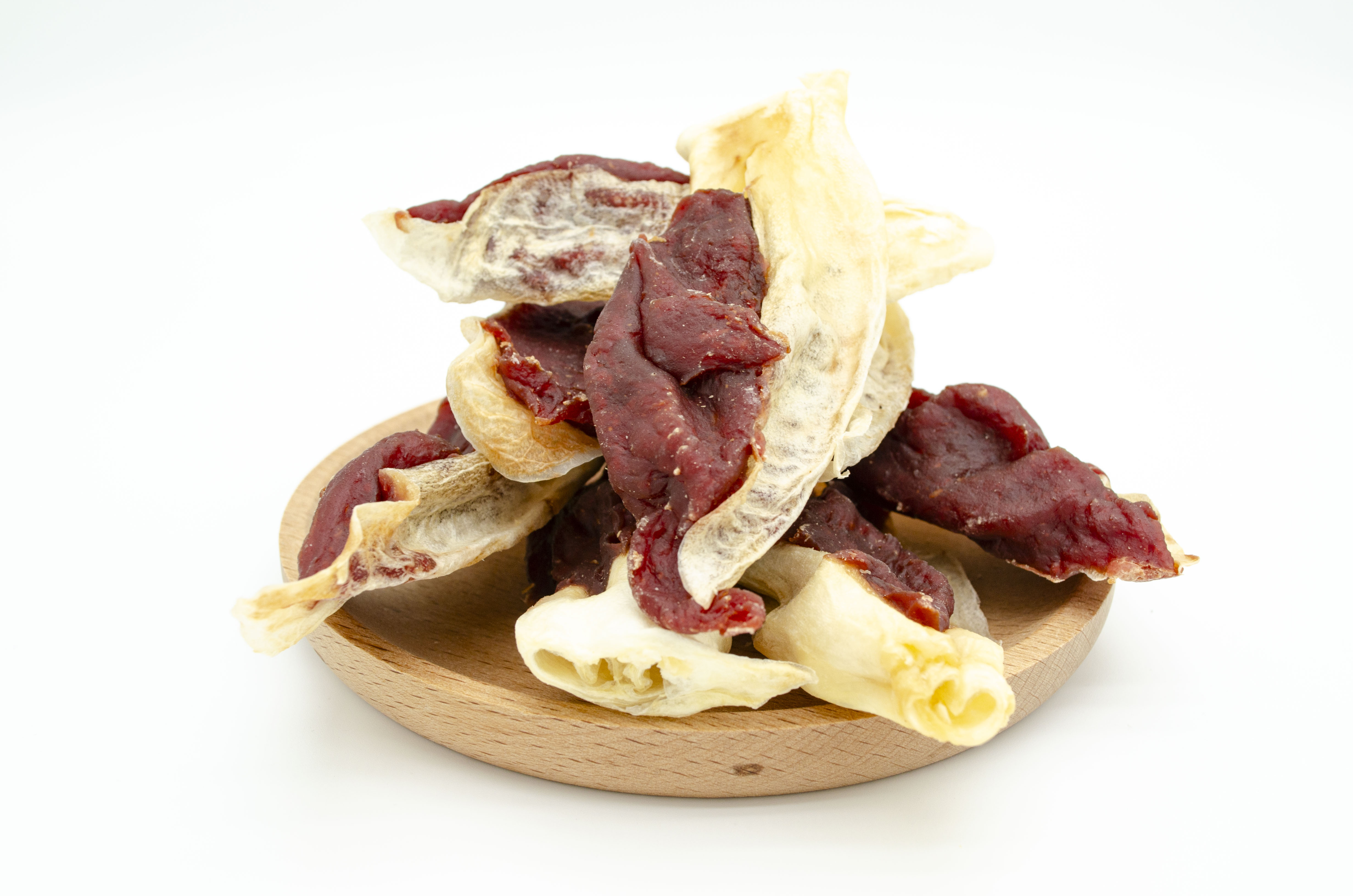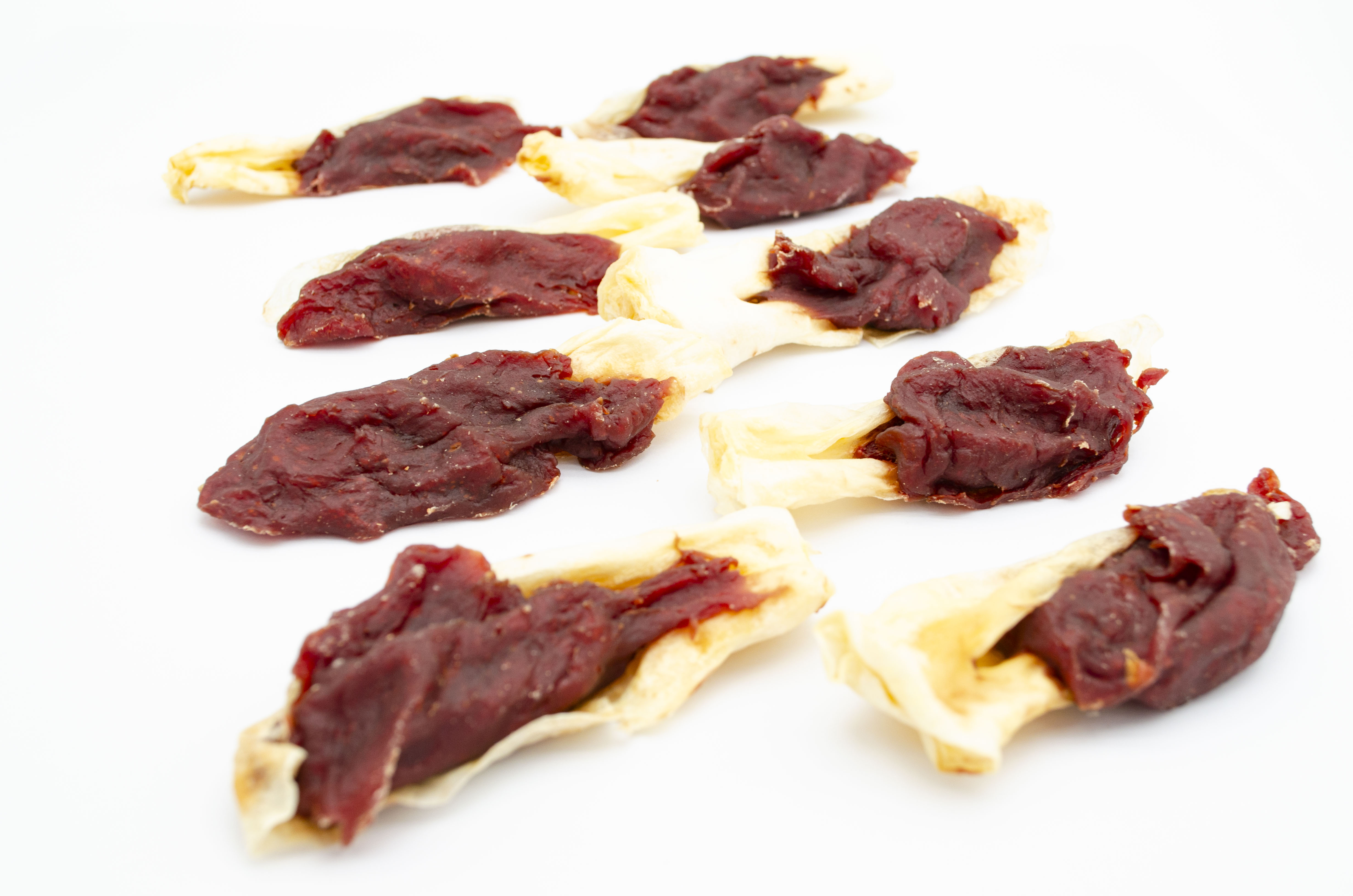 Баранина, ухо кролика, арахисовый белок, сорбит,; , утка, соль, глицерин, тапиоковый крахмал, сорбат калия.