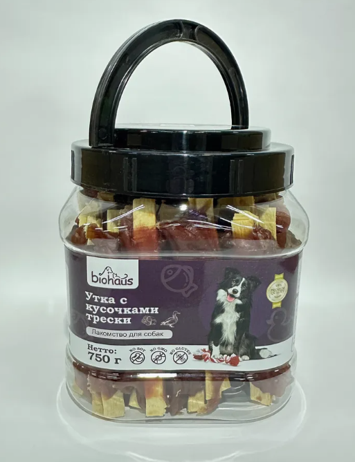 Лакомство для собак Утка с кусочками трески, 750 гр