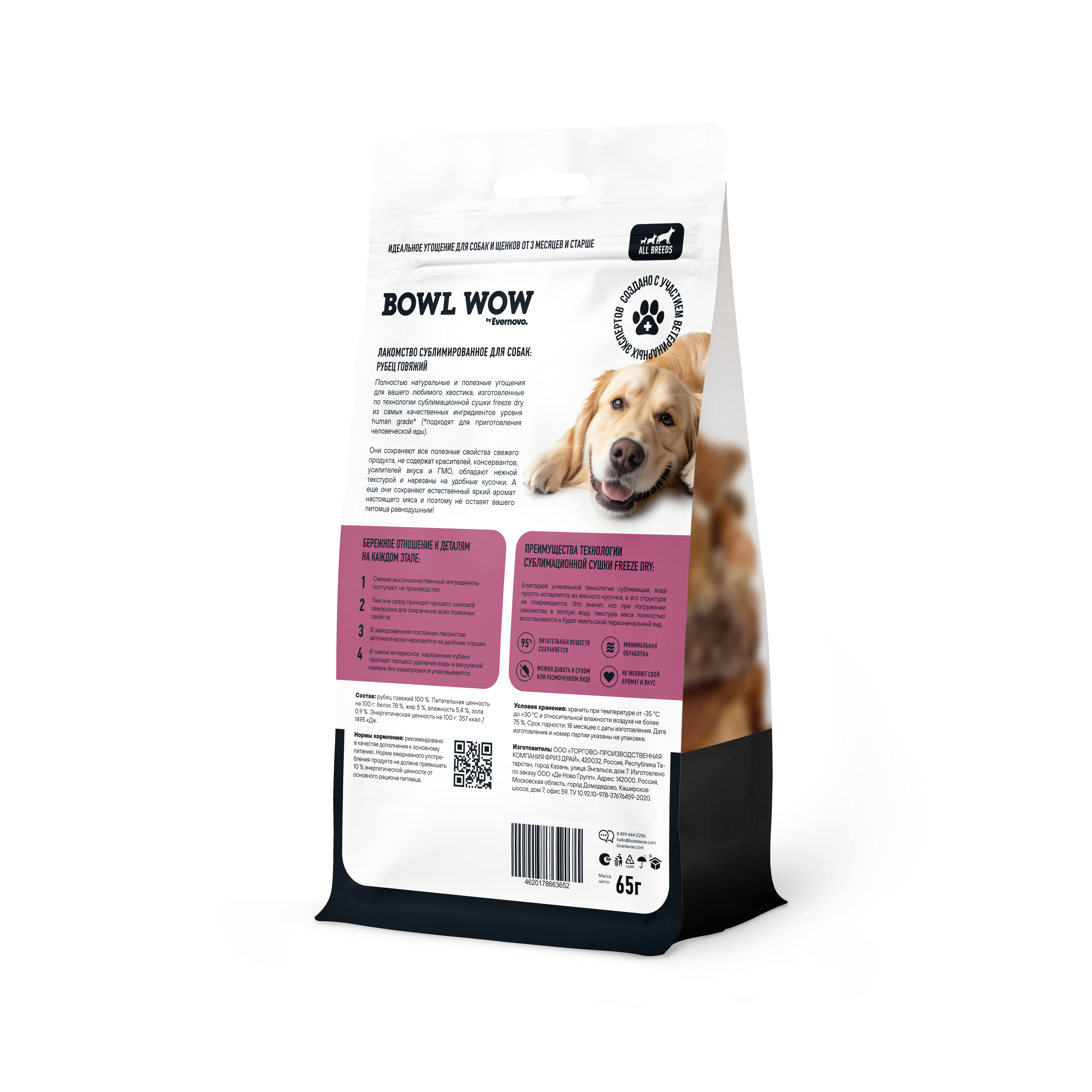 —BOWL WOW Лакомство сублимированное для собак: рубец говяжий 65 г