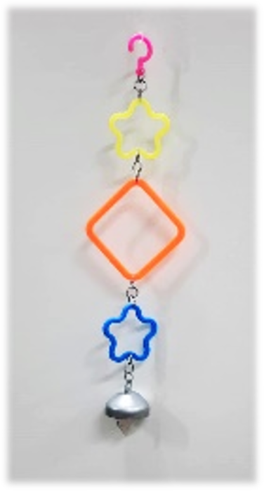 Выполнена игрушка в виде гирлянды с колокольчиком, она точно развлечет даже одинокого обитателя клетки, создав иллюзию компании.