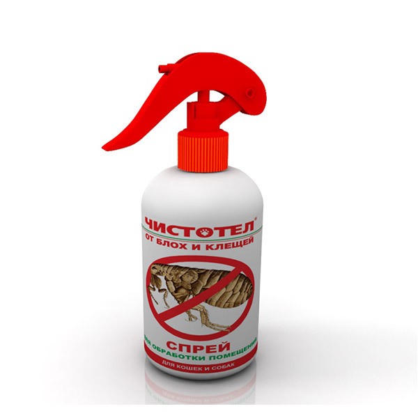 В целях уничтожения эктопаразитов в помещении и предотвращения повторной инфестации животных будки, клетки, подстилки и попоны обрабатывают Чистотел зооспреем из расчета 2 мл на 1 м2 обрабатываемой поверхности. Одно нажатие на распылительную головку флакона объемом 200 мл обеспечивает дозу препарата, равную 0,5 мл.