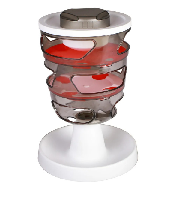 Кормушка-игрушка – отличный подарок для Вашего любимого питомца. Она сконструирована в виде трехэтажной конструкции со специальными отверстиями, позволяющими легко просунуть лапку и либо достать корм, либо протолкнуть его к центру и уронить в чашку-основание. Таким образом, еда поглощается не просто порционно, а в виде небольшой игры, что увеличивает азарт Вашего любимца и пробуждает его инстинкты охотника. Сама кормушка сборная и позволяет задать необходимый уровень сложности добычи пищи: можно поставить одну или две перегородки, а также отрегулировать размер отверстий. Подобная составная конструкция легко чистится и моется, а специальное широкое основание и противоскользящий резиновый коврик позволяют сохранять устойчивость во время активной игры. Изначально корм помещается на верхний уровень кормушки, а упавшие кусочки собираются в лотке внизу и не рассыпаются по всему полу. Подобный дизайн не только не дает скучать питомцу в Ваше отсутствие, но и стимулирует игровой характер кошек, а также выдает пищу пор