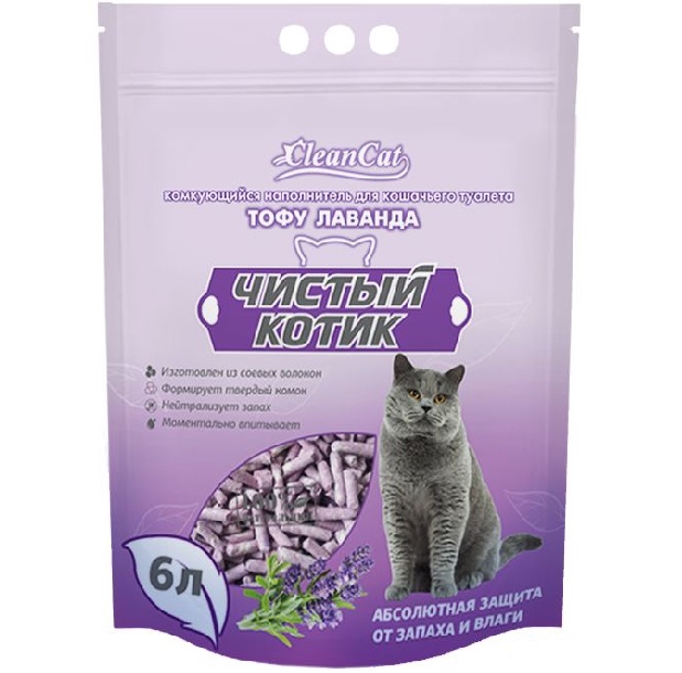 Спрессованные соевые волокна комкующегося наполнителя «Чистый котик» тофу лаванда эффективно впитывают влагу. Благодаря волоконной структуре при попадании жидкости соевые гранулы образуют крепкий комок и надежно запирают запах внутри до 2-х недель. Суперэкономичен в потреблении. Лоток всегда будет сухим и чистым. При попадании в канализацию наполнитель моментально растворяется, а его натуральный гипоаллергенный состав абсолютно безопасен не только для вашего питомца, но и для окружающей среды.