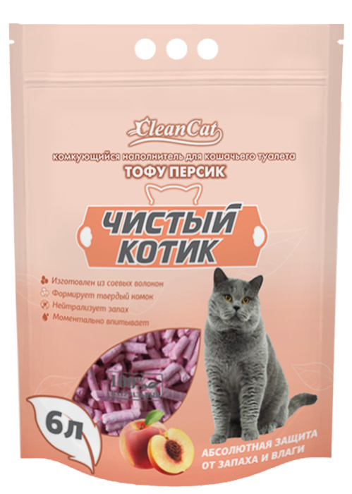 Спрессованные соевые волокна комкующегося наполнителя «Чистый котик» ТОФУ ПЕРСИК эффективно впитывают влагу. Благодаря волоконной структуре при попадании жидкости соевые гранулы образуют крепкий комок и надежно запирают запах внутри до 2-х недель. Суперэкономичен в потреблении. Лоток всегда будет сухим и чистым. При попадании в канализацию наполнитель моментально растворяется, а его натуральный гипоаллергенный состав абсолютно безопасен не только для вашего питомца, но и для окружающей среды.