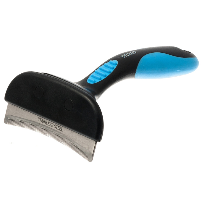 Служит для удаления отмершего подшерстка, предотвращает появление колтунов. Уменьшает линьку на 90%. Глубоко проникает в шерсть, не повреждая кожу и остевой волос, делает шерсть здоровой и блестящей.