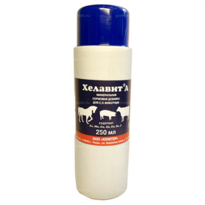 Хелавит А (Нelavit А) - добавка кормовая минеральная для обогащения рационов сельскохозяйственных животных микроэлементами с целью повышения продуктивности. По внешнему виду Хелавит А представляет собой раствор темно-кориqневого цвета, без запаха, хорошо растворим в воде и нерастворим в органических растворителях.