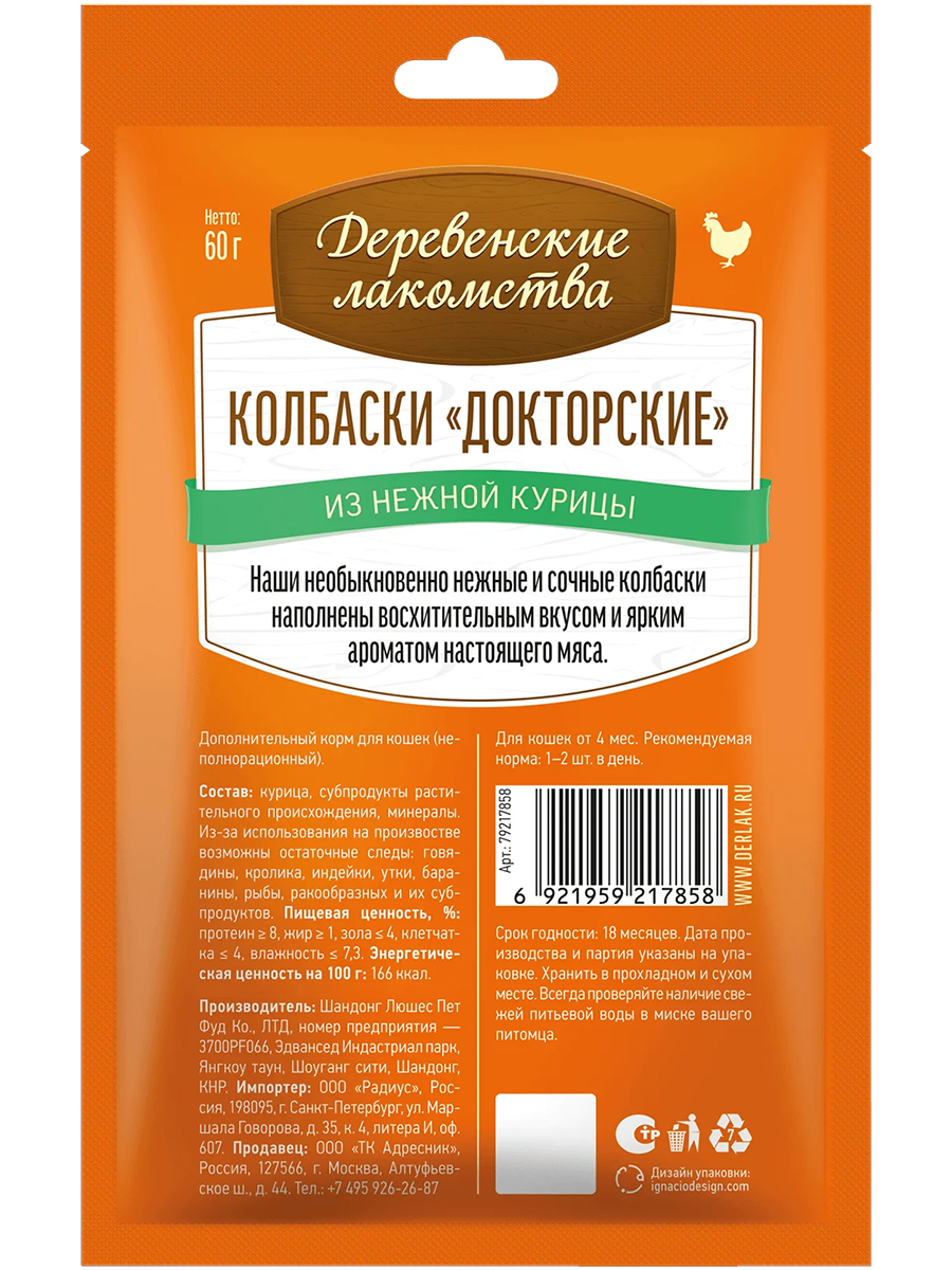 Необыкновенно нежные и сочные колбаски для кошек наполнены восхитительным вкусом и ярким ароматом настоящего мяса. Мы тщательно отобрали лучшие кусочки куриного филе, чтобы создать продукт высочайшего качества, который понравится даже самым привередливым кошкам. Колбаски "Докторские" из нежной курицы идеально подходят для поощрения, дрессировки или просто как вкусное дополнение к основному рациону. Удобная упаковка позволяет сохранить свежесть и аромат продукта на долгое время.