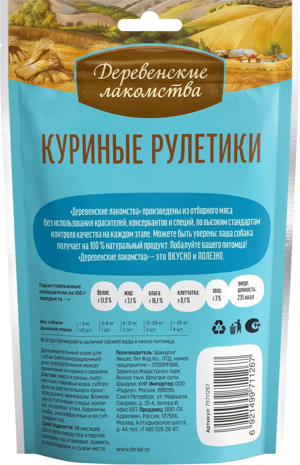 куриное мясо, сыромятная говяжья кожа
