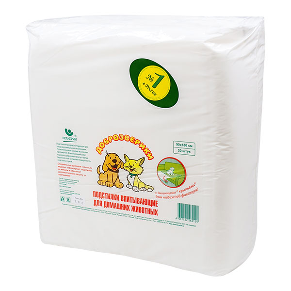Впитывающие подстилки «Доброзверики» большого размера с фиксирующими «крыльями» по бокам созданы специально для наилучшей защиты заднего сиденья автомобиля (поскольку закрывают его полностью), а также — мебели и лежанок (при уходе за старыми и больными питомцами, которые в силу состояния здоровья не могут дотерпеть до прогулки). Подстилки разработаны с учётом физиологических особенностей собак и кошек, и поэтому впитывают и удерживают запах лучше, чем обычные пелёнки, которые покупают многие хозяева, думая, что разницы нет.