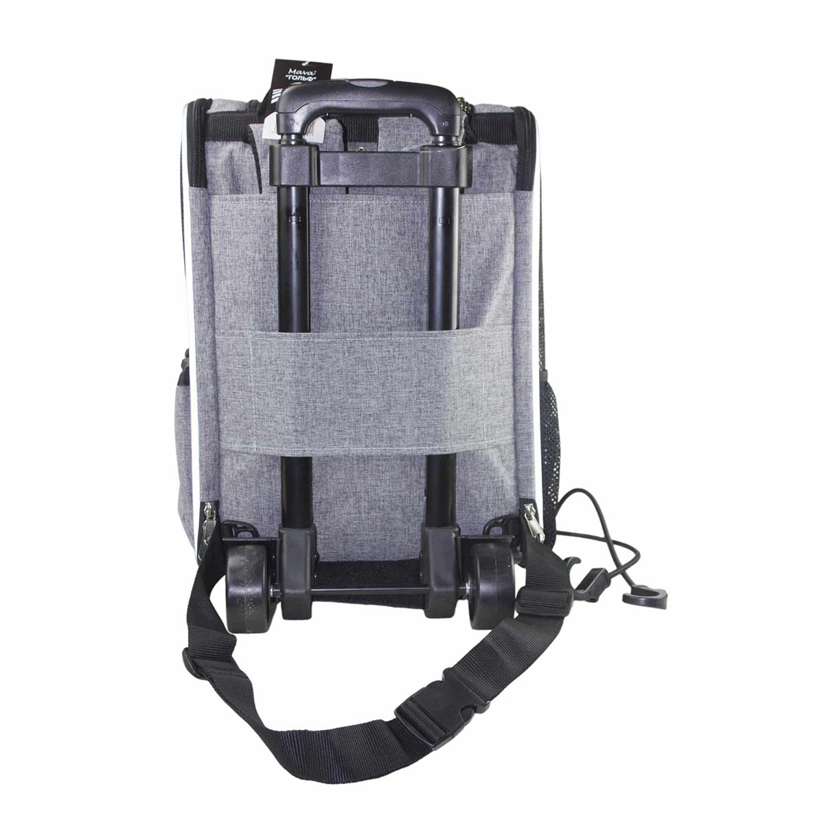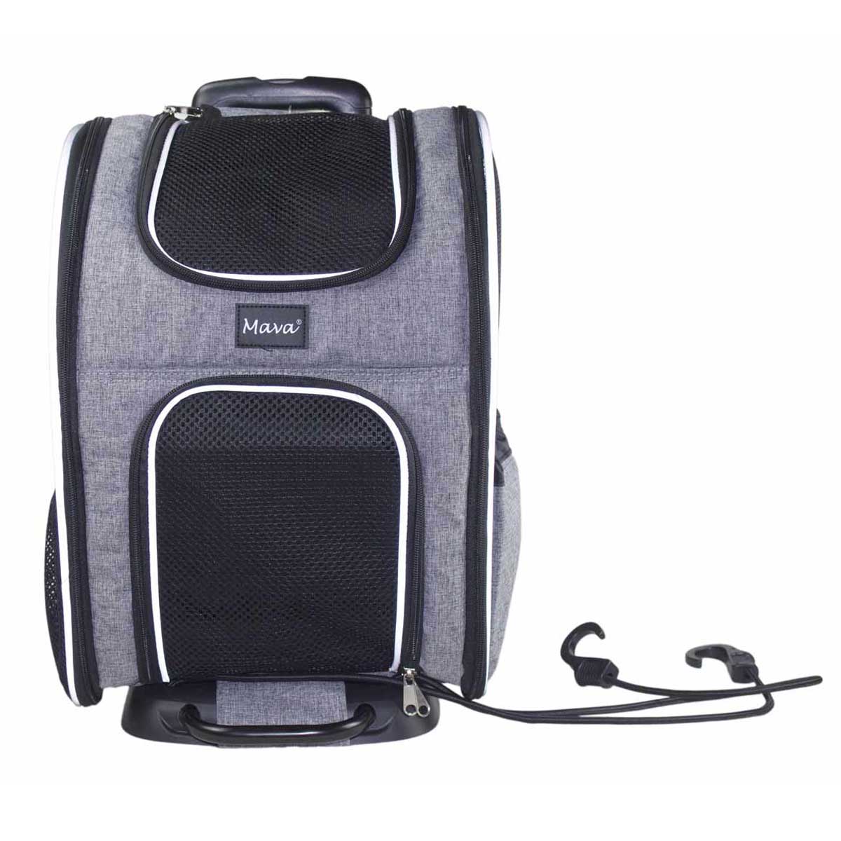 Для перевозки одновременно ДВУХ питомцев рюкзак может быть закреплён на Тележке на колёсах, а сверху на него ставится сумка "Поло". Каркас рюкзака достаточно жесткий, что позволяет разместить на нём сумку "Поло", не помяв сам рюкзак.