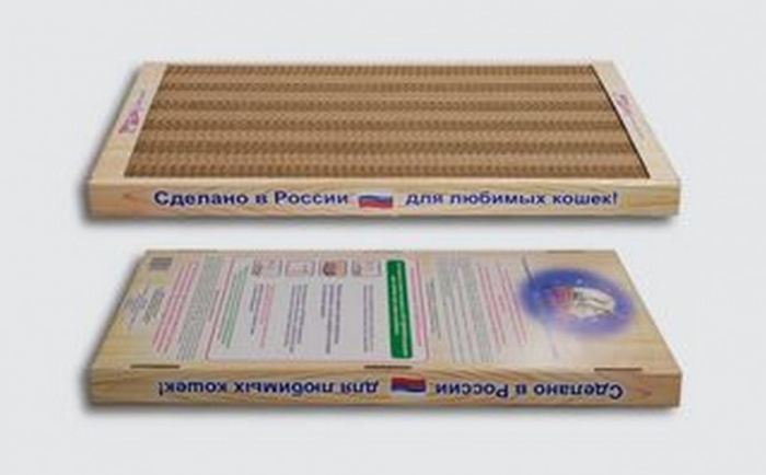 Очень простая и функциональная когтеточка из полосок гофрокартона, формованных в плоскую "доску", которую можно положить на пол или поставить вертикально, оперев на стену или какой-то другой предмет. Гофрокартон довольно мягкий и когти не застревают в нем. Если когтеточка пришла в негодность, ее будет недорого заменить.