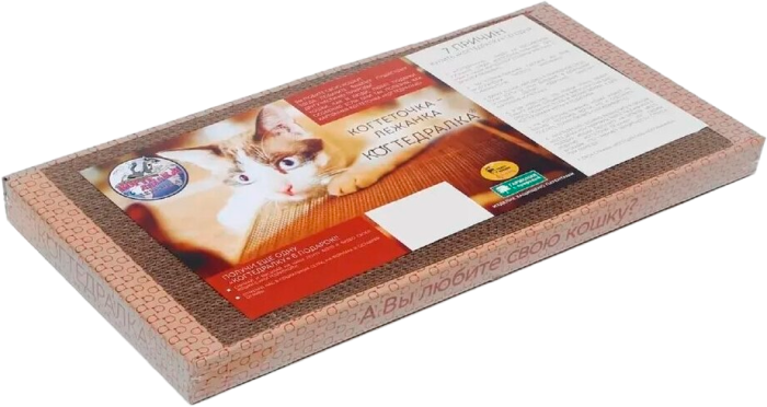 Очень простая и функциональная когтеточка из полосок гофрокартона, формованных в плоскую "доску", которую можно положить на пол или поставить вертикально, оперев на стену или какой-то другой предмет. Гофрокартон довольно мягкий и когти не застревают в нем. Если когтеточка пришла в негодность, ее будет недорого заменить.