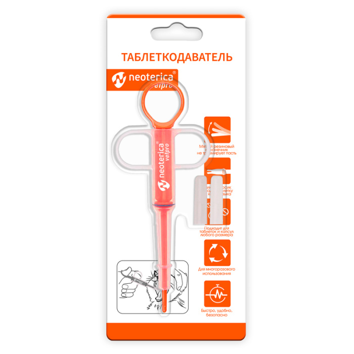 Таблеткодаватель обеспечивает безопасный и быстрый способ введения таблетки в период лечения домашних животных. Быстро, удобно, безопасно! Мягкий резиновый наконечник не травмирует пасть Длинный носик доводит таблетку до корня языка Подходит для таблеток и капсул любого размера 2 наконечника в комплекте для многоразового использования