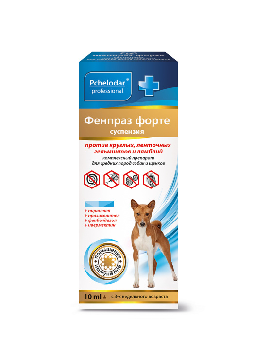 Фенпраз суспензия для собак средних пород — комплексный антигельминтный препарат с пчелиным маточным молочком, который обладает широким спектром действия и уничтожает круглых и ленточных гельминтов на всех стадиях их развития. Активные компоненты препарата Фенпраз помогают мягко и безопасно избавить организм животного от гельминтов и продуктов их жизнедеятельности. Натуральное маточное молочко, содержащее в своем составе витамины, минеральные вещества, аминокислоты и ферменты, способствует быстрому восстановлению организма, снятию интоксикации, поддержанию функции желудочно-кишечного тракта и печени, повышению иммунного статуса и нормализации обмена веществ. А также помогает предотвратить побочные явления и осложнения, возникающие при гибели паразитов в организме, что особенно важно для молодых (щенки и котята), пожилых, беременных, больных и ослабленных животных.Фенпраз хорошо переносится животными разных пород и возрастов.