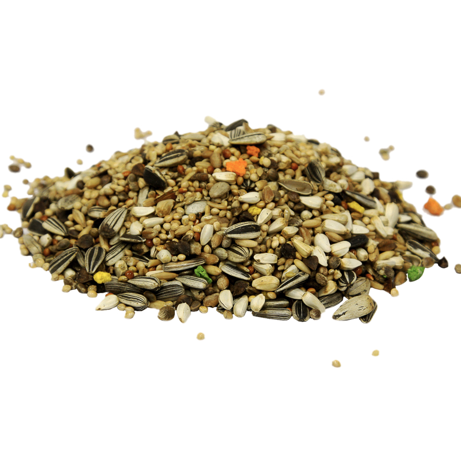 Классическая смесь для средних попугаев. В состав входят злаковые, семена полосатого подсолнечника, гречиха, семена каеареечника, семена конопли, пекарные продукты.