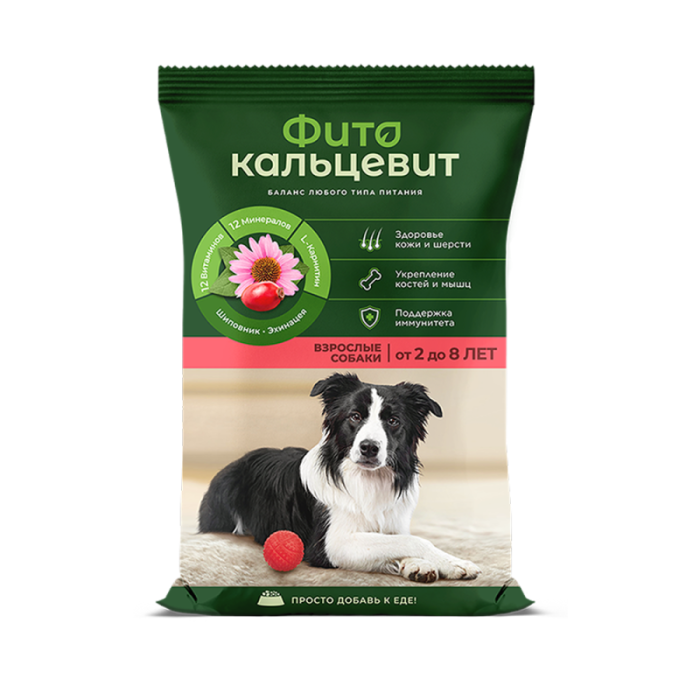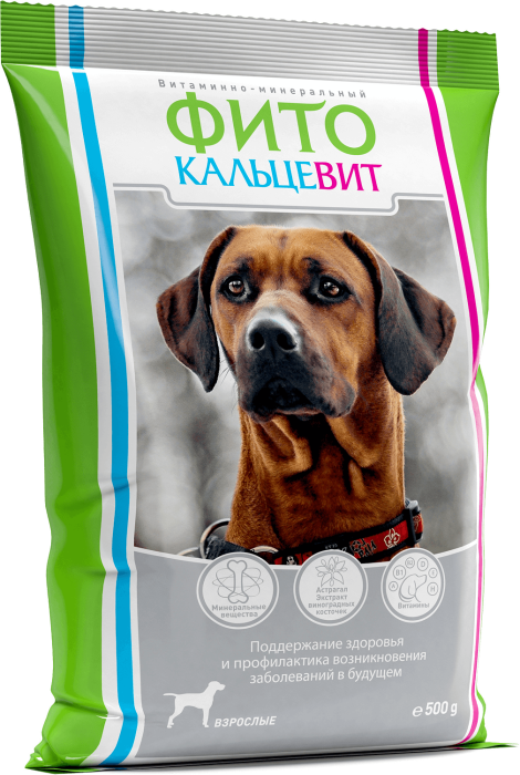 Фитокальцевит для взрослых собак предназначен для включения в состав рациона животных, начиная со второго года жизни.