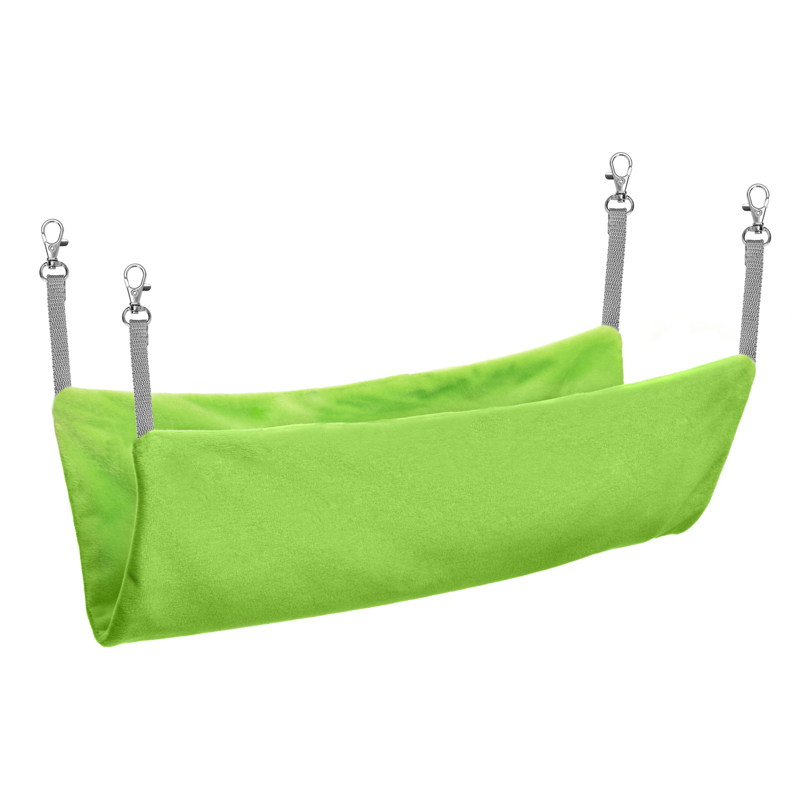 Гамак "Клевер" для мелких животных обязательно понравится вашему питомцу. Выполнен из мягкого плюшевого материала. Легко подвешивается в клетке при помощи карабинов. Цвет: салатовый. Размер гамака: 410*320*10мм.