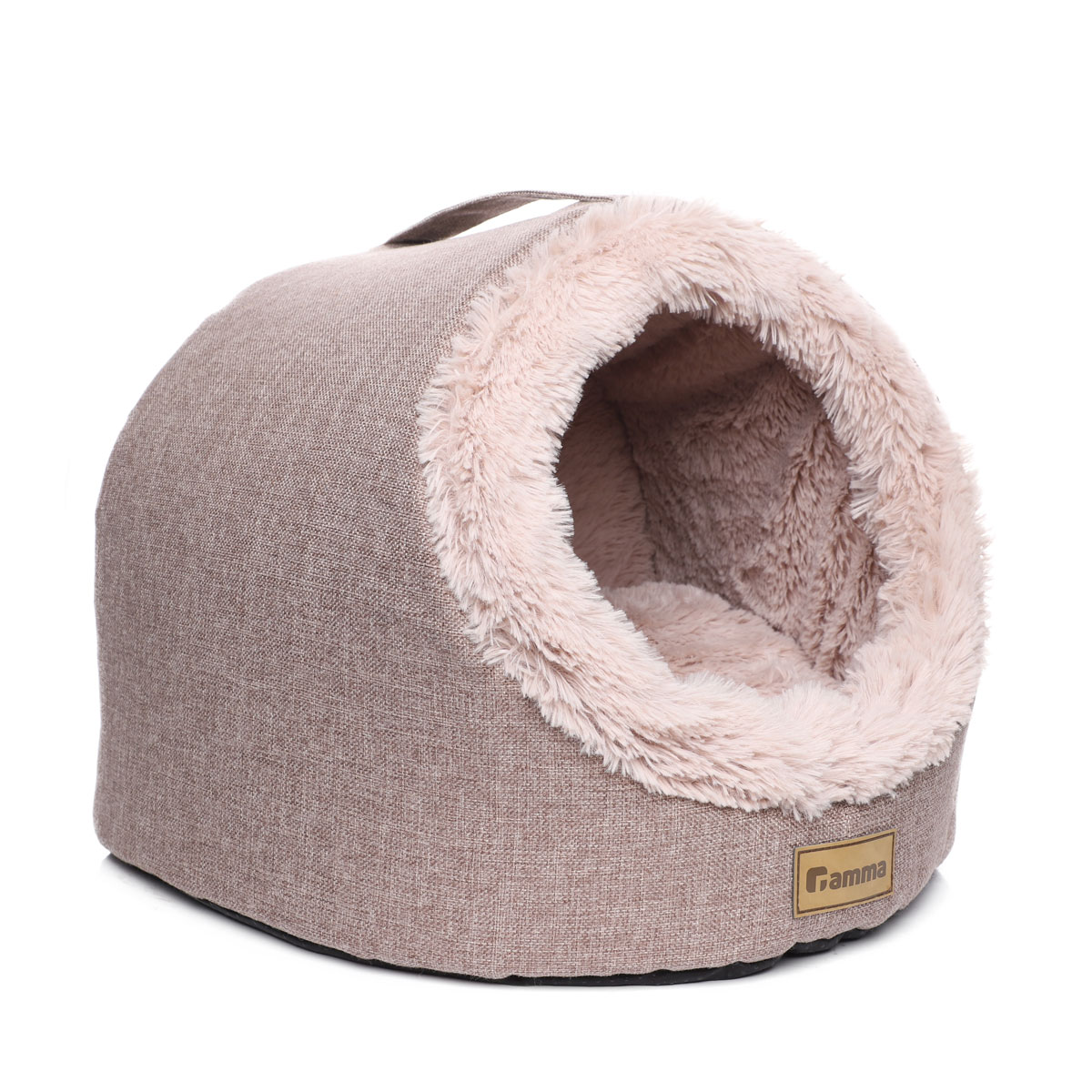 Этот домик станет любимым укрытием для кошек и маленьких собак. Внешняя ткань — рогожка, прочная и приятная на ощупь, прекрасно держит форму. Внутри расположена мягкая плюшевая отделка, которая дарит тепло и спокойствие во время сна или спокойной игры. Удобные бортики поддерживают спинку и шейку питомца, создавая ощущение безопасного укрытия. Подушка внутри сделана из мягкого плюша и легко снимается для очистки. Стильный нейтральный дизайн и натуральная палитра позволяют домику органично вписаться в любой интерьер. Размер: 420*370*310мм. Цвет: бежевый.