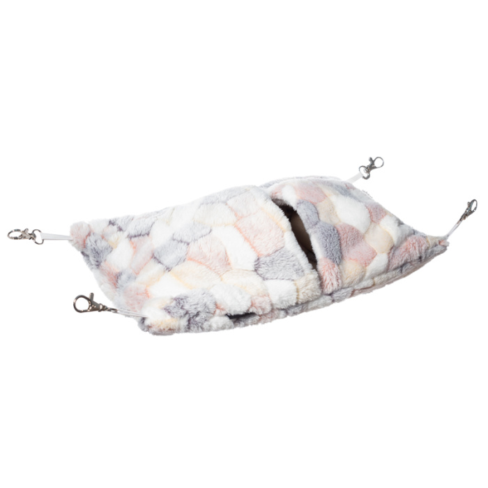 Гамак-карман "Шале" для мелких животных обязательно понравится вашему питомцу. Выполнен из мягкого плюшевого материала. Легко подвешивается в клетке при помощи карабинов. Цвет: разноцветный. Размер гамака: 340*240*20мм.
