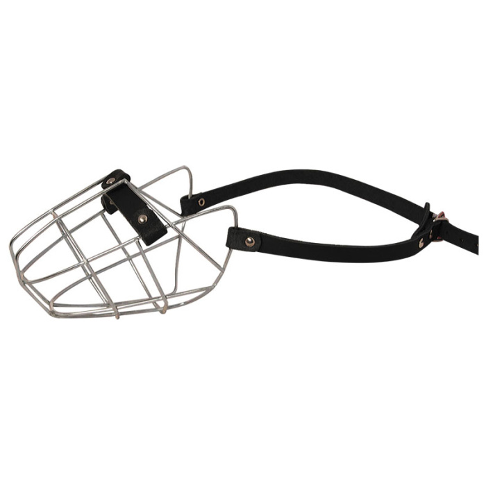 Металлический намордник - необходимый аксессуар для владельцев больших собак и питомцев бойцовских пород. Модель изготовлена с учетом анатомических особенностей морды бультерьеров. В таком наморднике собака может свободно дышать, пить воду и чувствовать себя комфортно и в жару, и в холод. Прутья изделия изготовлены из высокопрочного металла, а с внутренней стороны имеется кожаный ремешок-вкладыш, который уменьшит трение. Размеры изделия: 175х120х120мм.