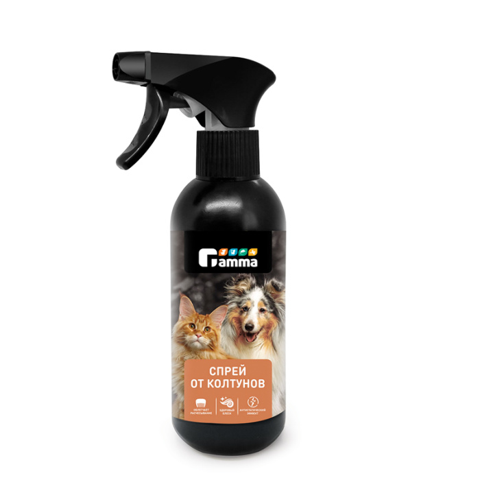 Спрей от колтунов значительно облегчает расчесывание и укладку шерсти кошек и собак. Средство равномерно распыляется по всей поверхности шерстяного покрова, увлажняет кожу и придает меху здоровый блеск. Кондиционирующие добавки в составе спрея усиливают барьерные свойства кожи, способствуют бережному распутыванию колтунов и устранению секущихся кончиков, оказывают смягчающий и антистатический эффект. Объем: 250мл.