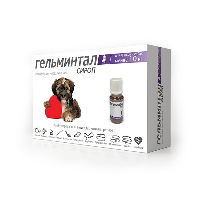 Гельминтал Сироп для щенков и собак эффективно уничтожает: