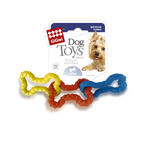 Игрушка для собак сделана из трех резиновых косточек, соединенных между собой. Подходит для маленьких собак. Игрушка выполнена из мягкой резины, которая не травмирует зубы и дёсны.