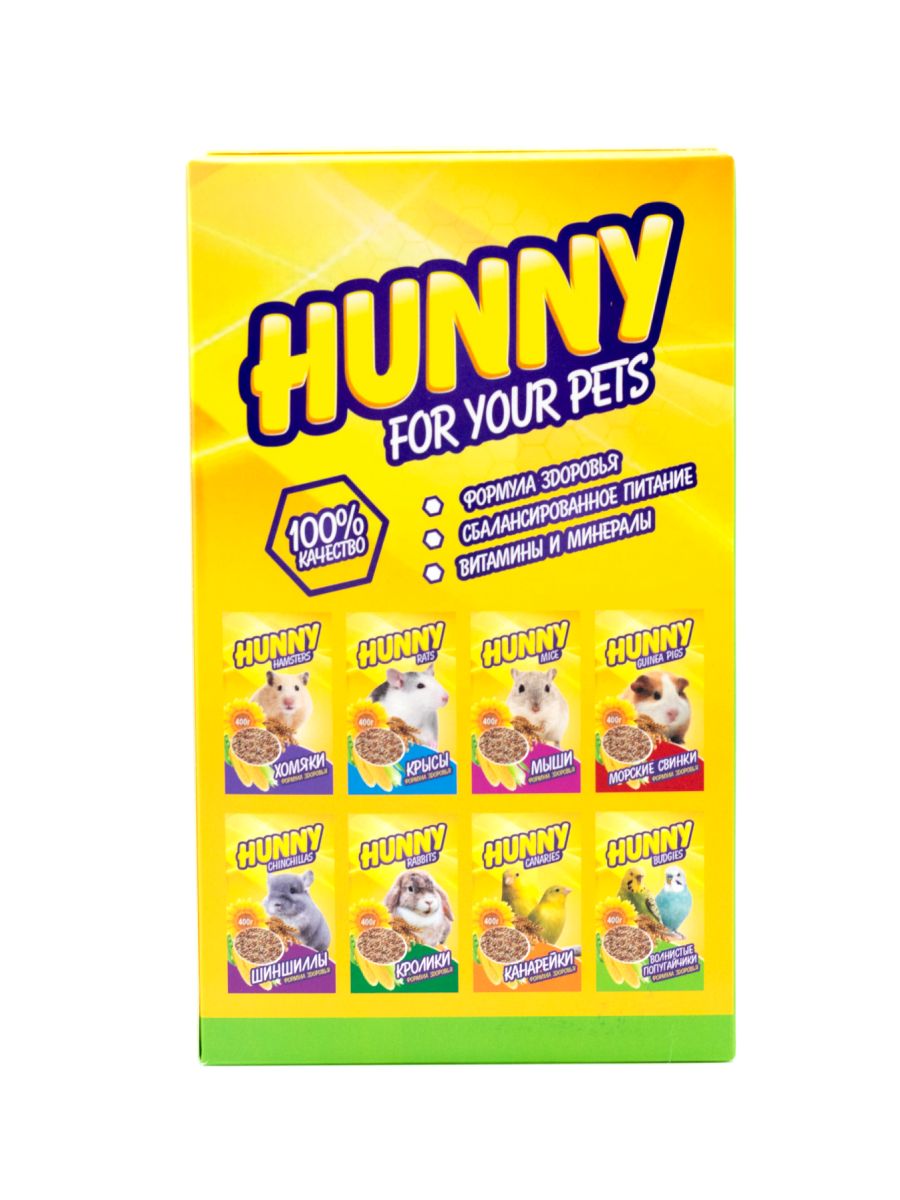 "HUNNY" - это не просто корм, это сбалансированная формула, которая обеспечивает вашего любимца всеми необходимыми питательными веществами. В состав корма входят различные семена, богатые:
