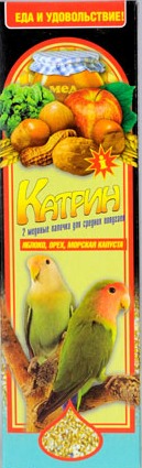 Медовые палочки Катрин представляют собой вкуснейшее лакомство для вашего любимого попугая. Каждый восхитительный кусочек даёт силу и энергию, так как содержит все компоненты, которыми птицы питаются в естественной среде обитания. Основные составляющие - мёд, лецитин и минералы, добавленные в медовые палочки, придающие лучший вкус и улучшают питательный баланс. Хрустящие кусочки дают возможность укрепить клюв вашей питомца. Медовые палочки - полностью натуральный, естественный продукт. Палочки состоят из специальной основы, включающей в себя натуральный мёд, лецитин и необходимый для вашего питомца набор минералов. Медовые палочки - это правильное и сбалансированное питание, укрепляющее и дающее силы вашей птице с каждой новой палочкой Катрин.