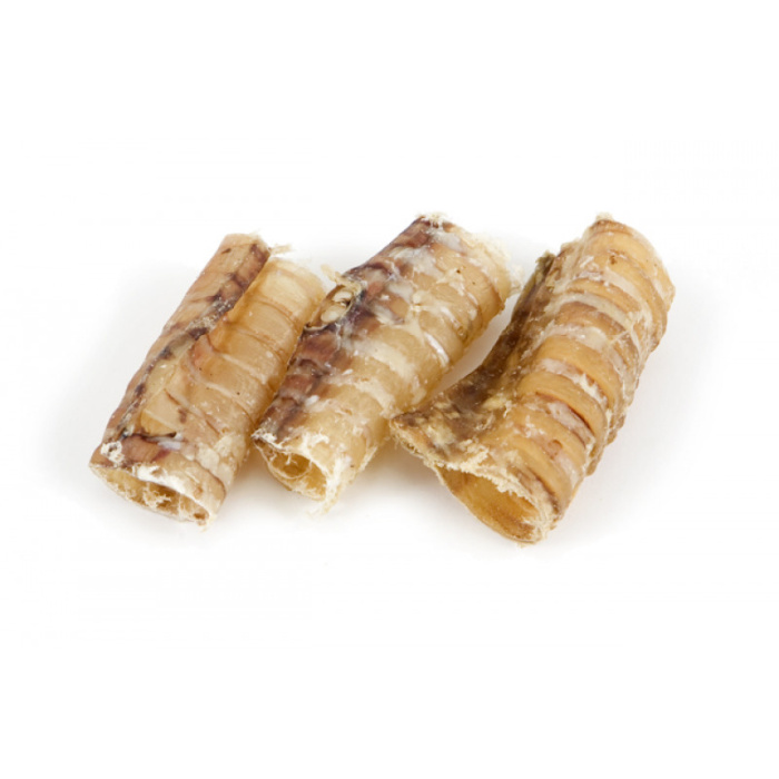 Высушенная говяжья трахея, отрезки по 10см. Богатое хрящевой и соединительной тканью лакомство. Подходит для удаления зубного налета. Займет на продолжительное время собаку любого возраста. Для собак средних, крупных и больших пород.