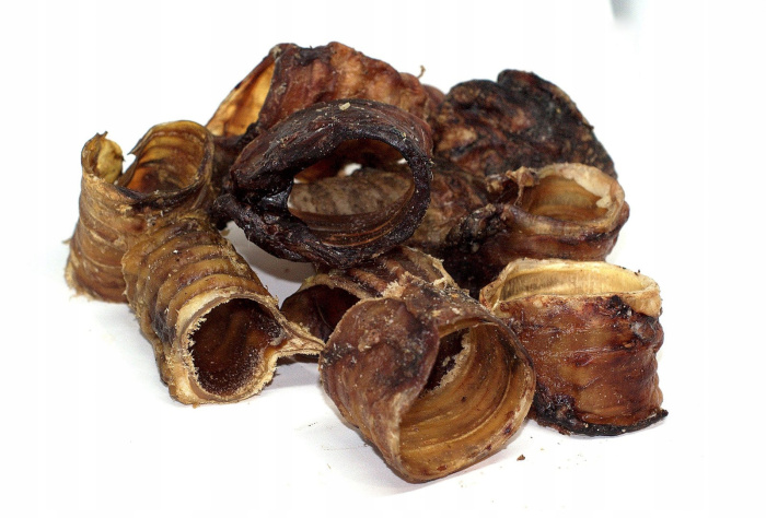 Высушенная говяжья трахея. Богатое хрящевой и соединительной тканью лакомство. Подходит для удаления зубного налета. Займет на продолжительное время собаку любого возраста. Для собак средних, крупных и больших пород.