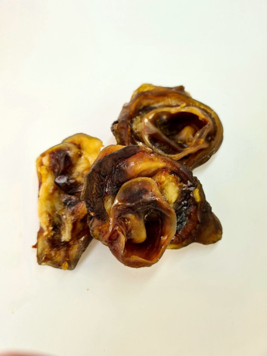 Ухо говяжье не содержат углеводы, благодаря этому их можно применять в диетическом питании. В состав говяжьих ушей входят такие макро и микроэлементы, как кальций, йод, магний, железо, сера, калий и фосфор. Кроме того, говяжьи уши содержат витамины В1 и В2, которые очень полезны для здоровья организма.