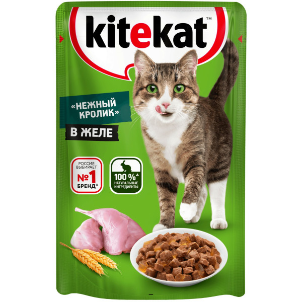 Kitekat "желе кролик" - порционный корм для взрослых кошек. Порция сочных кусочков с говядиной в нежнейшем желе, приготовленных по особому рецепту. В его основе - формула сбалансированного питания, которая содержит белки, минералы, витамины, таурин и растительное масло (источник омега - 6).
